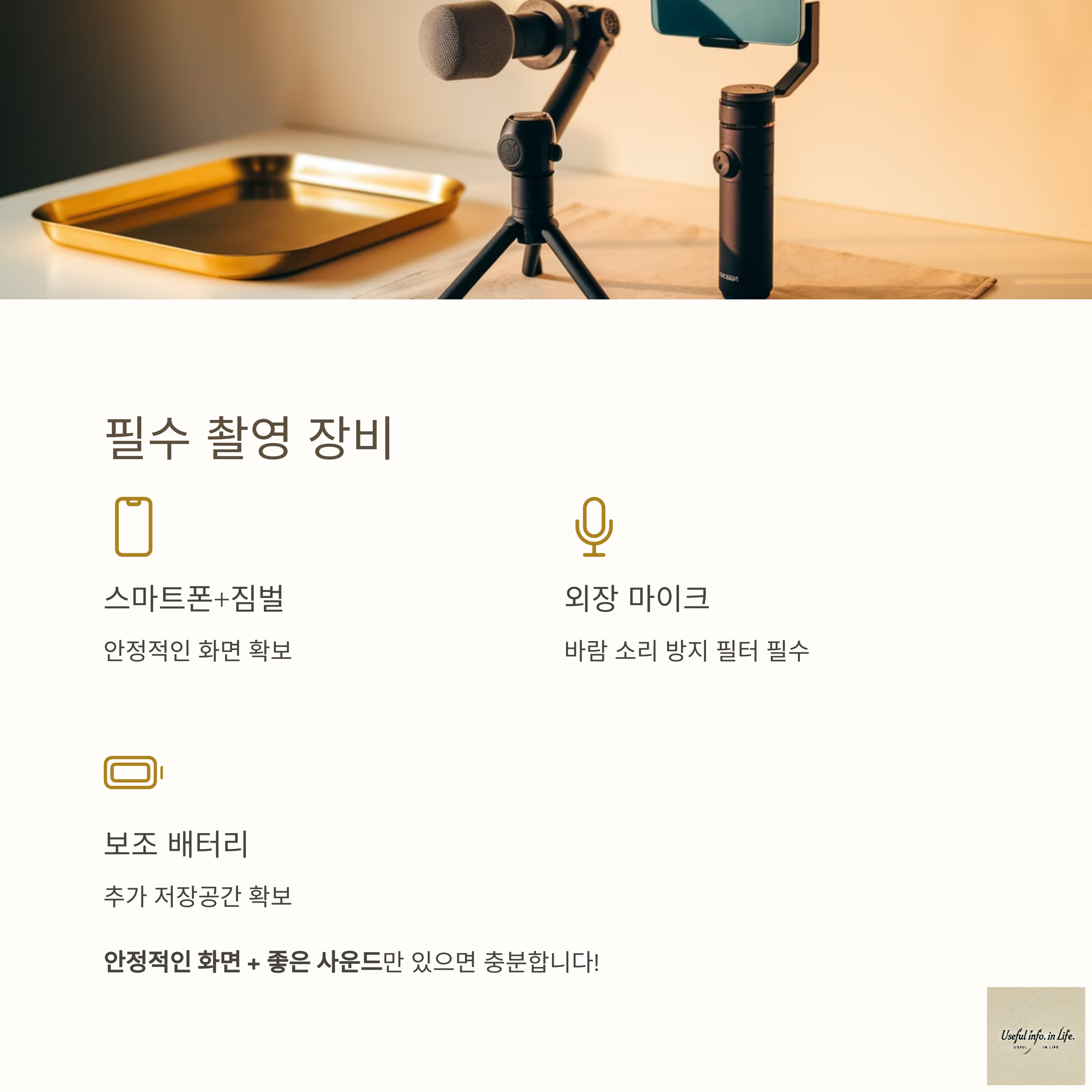 거창한 카메라 없어도, 안정적인 화면 + 좋은 사운드만 있으면 충분합니다!
