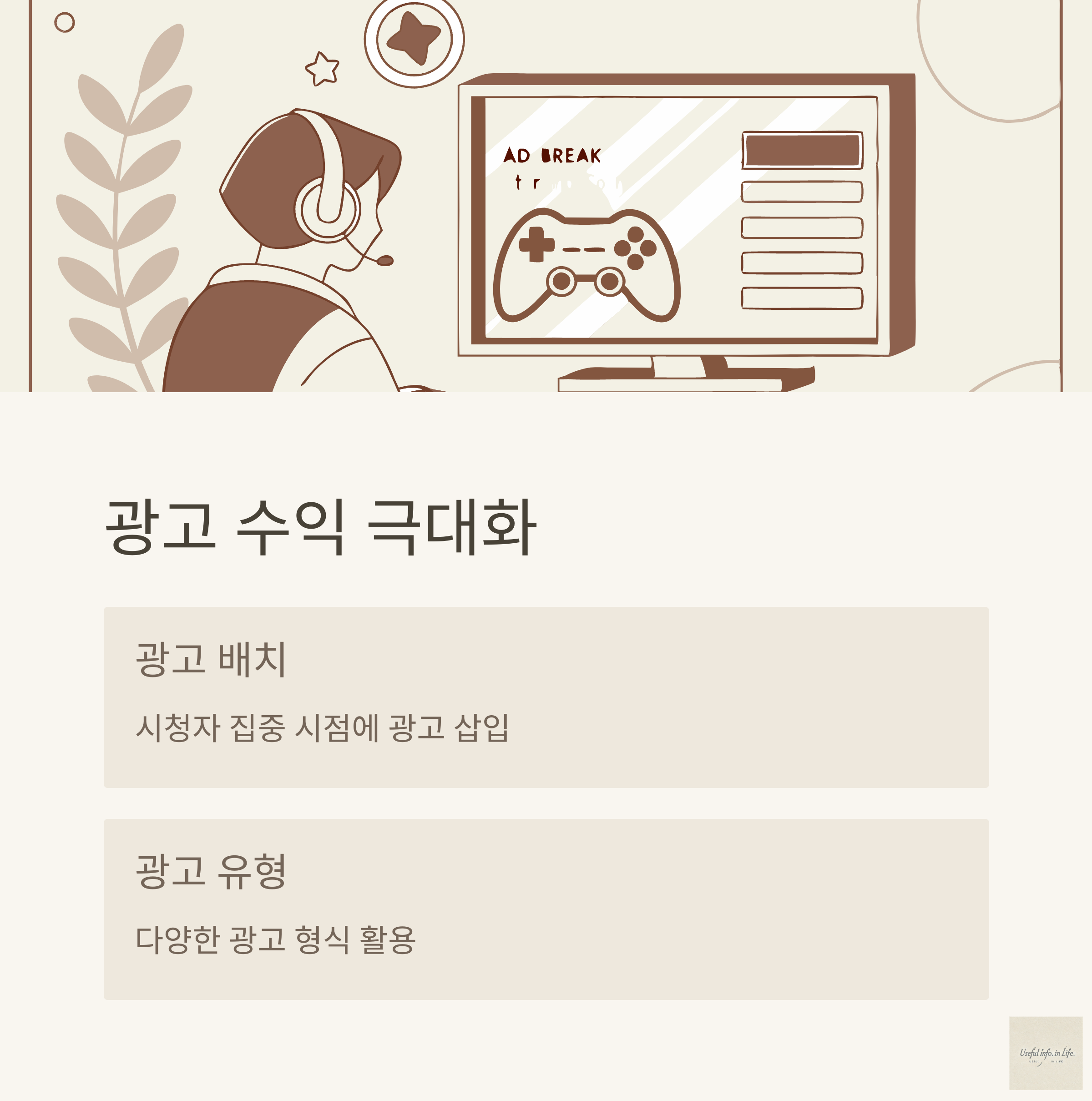 라이브 방송 중에 자동으로 광고가 삽입되지만, 광고 위치와 유형을 조절하면 수익을 극대화할 수 있습니다.