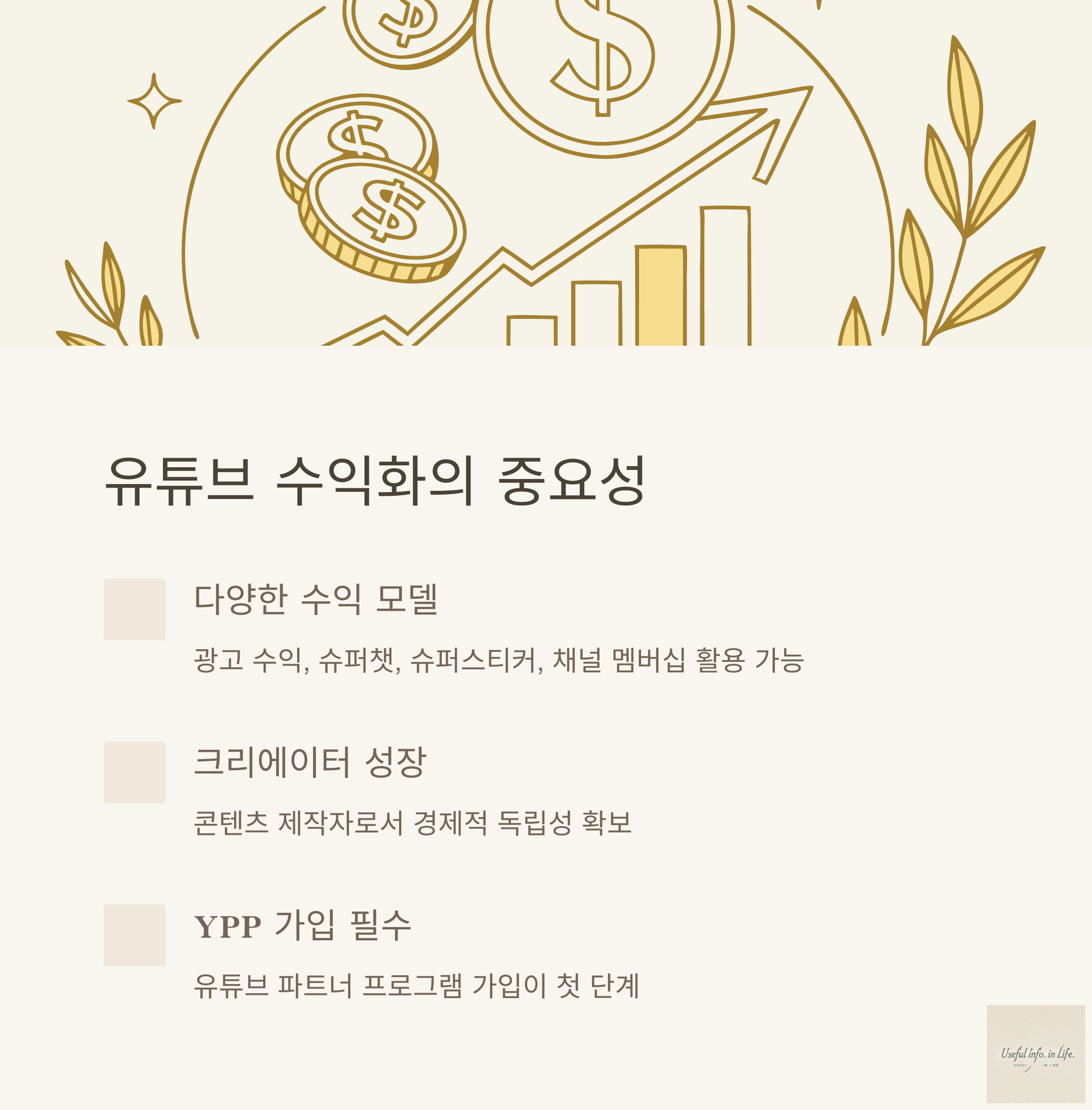 유튜브 수익화는 단순히 채널을 통해 돈을 버는 방법일 뿐만 아니라,