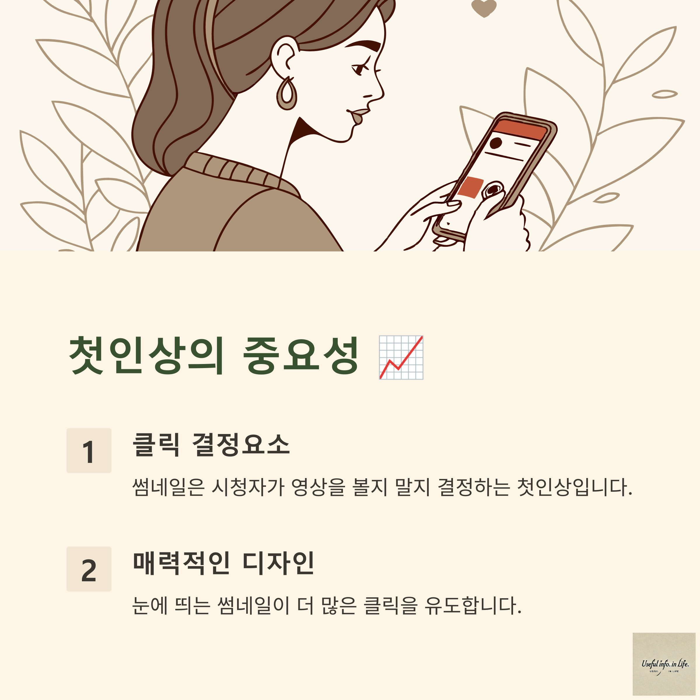 썸네일은 영상의 첫인상을 결정짓는 요소로, 시청자들이 영상을 클릭할지 말지를 판단하는 데 큰 영향을 줍니다.