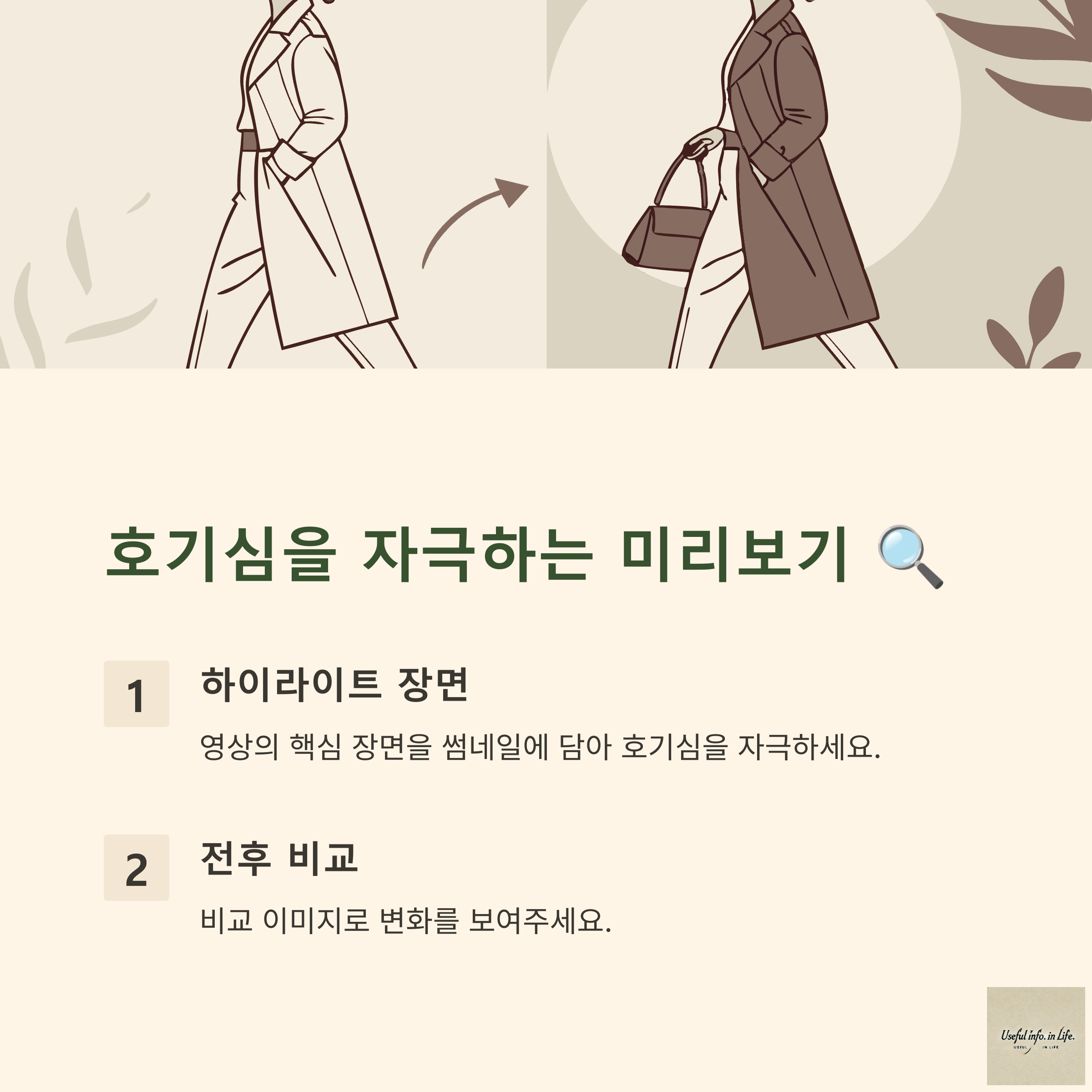 영상의 핵심 내용을 암시하는 미리보기 요소를 썸네일에 포함하여 시청자의 호기심을 자극하세요.