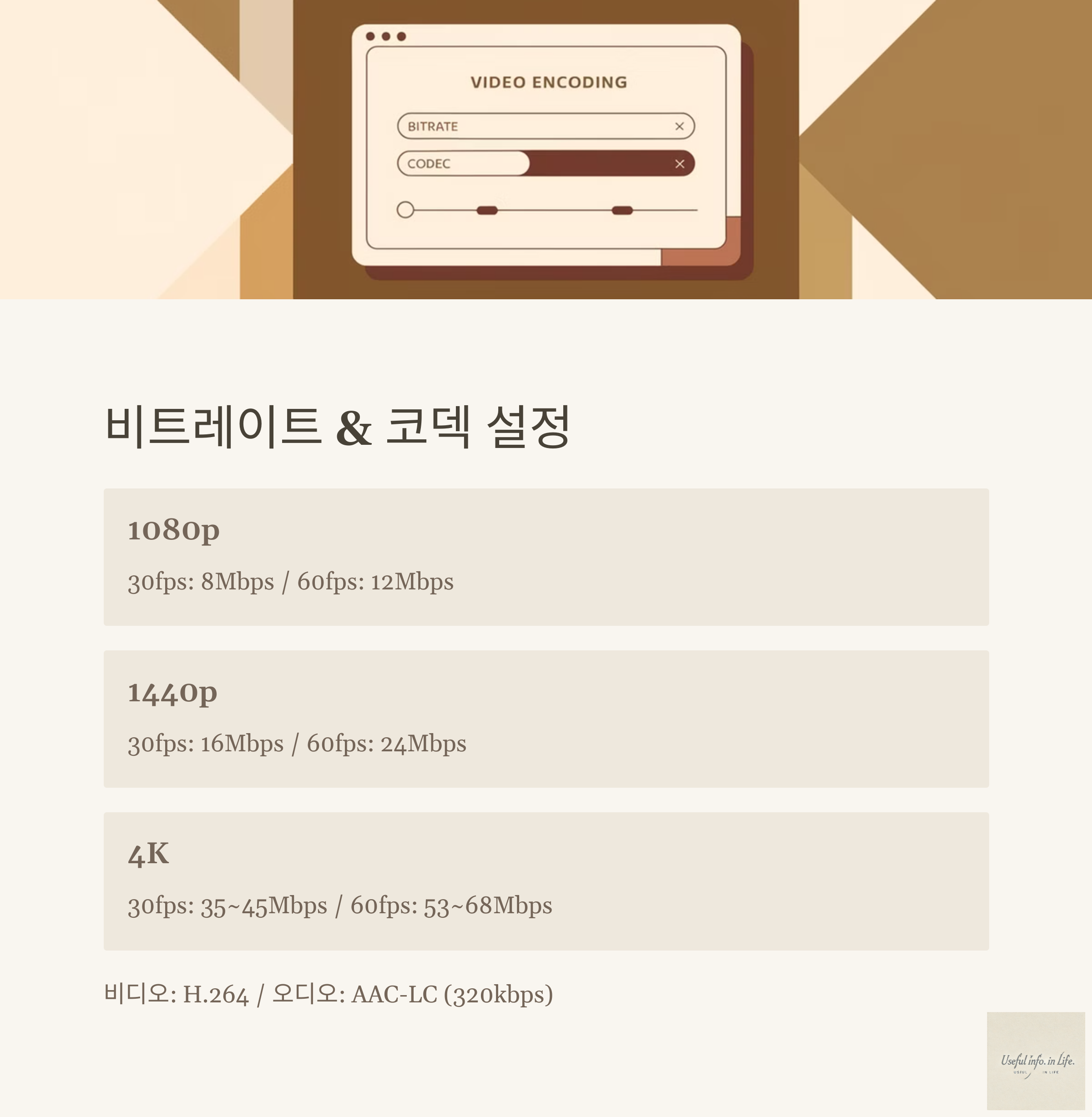 비트레이트가 낮으면 화질이 뭉개지고, 너무 높으면 업로드 속도가 느려져요.