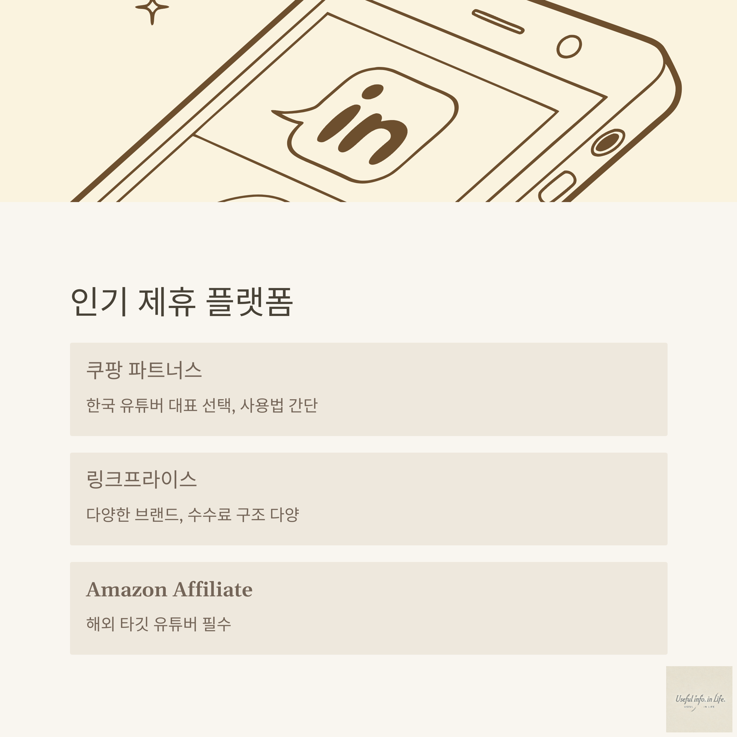 유튜브에서 가장 많이 활용되는 제휴 플랫폼들은 다음과 같아요: