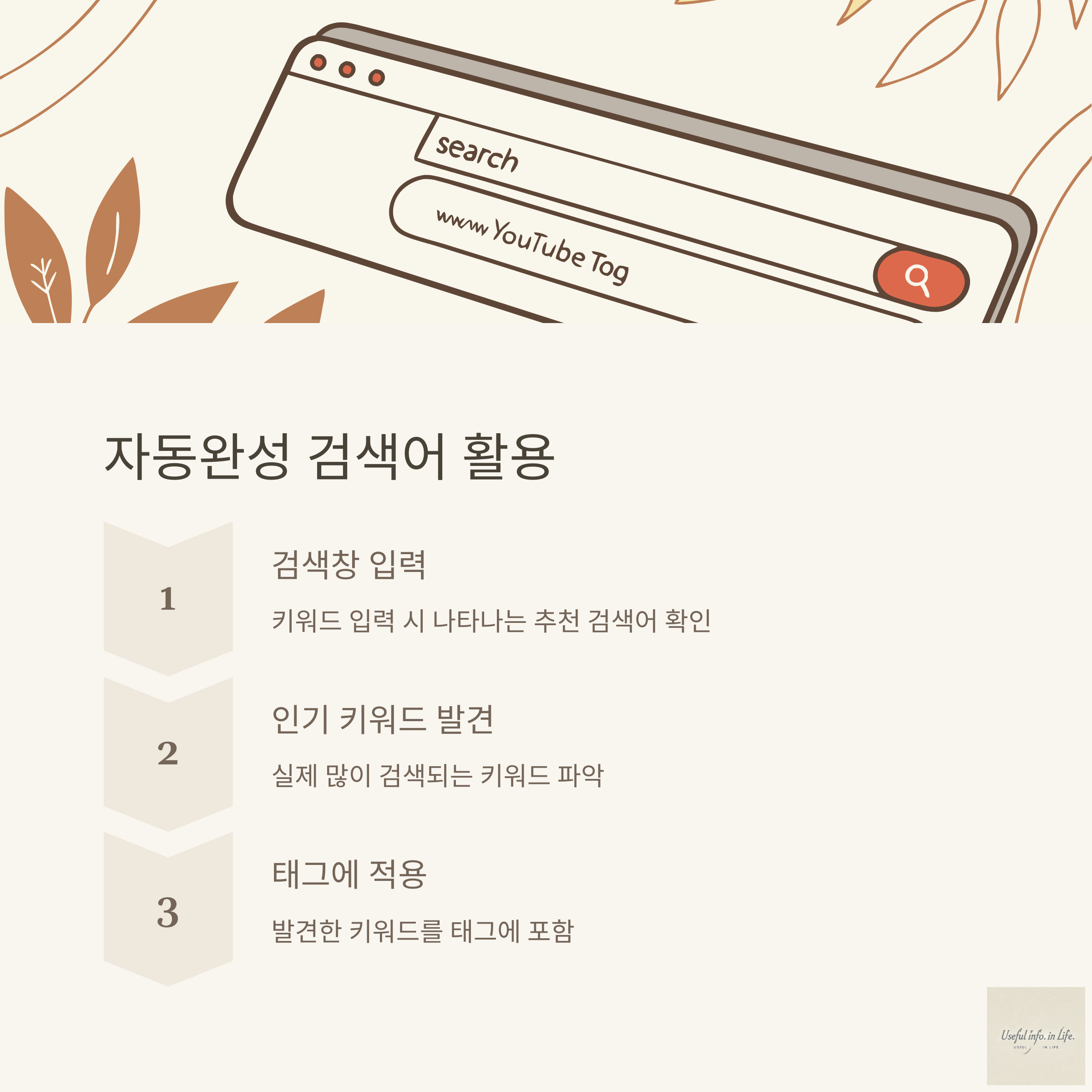 - "유튜브 태그" 입력 시 자동완성 키워드