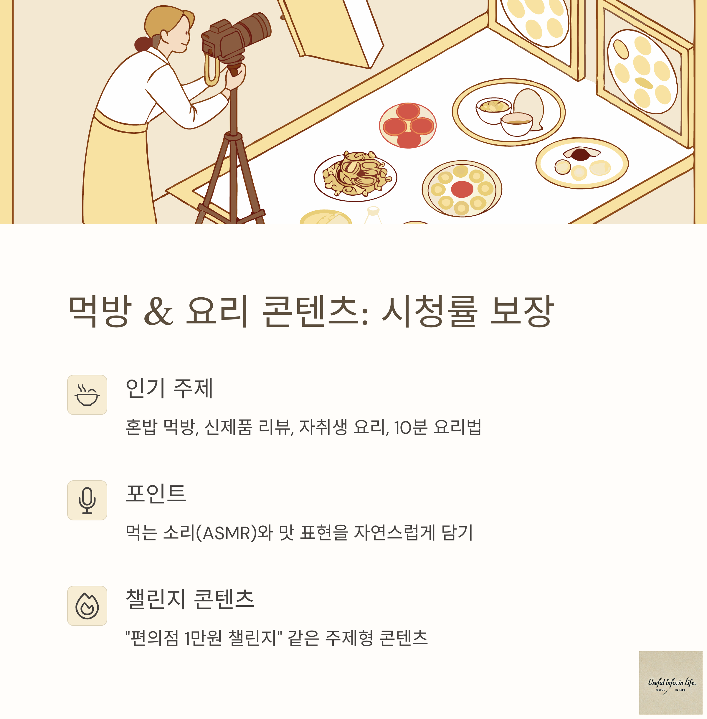 - 먹방 & 요리 콘텐츠: 시청률 보장 콘텐츠