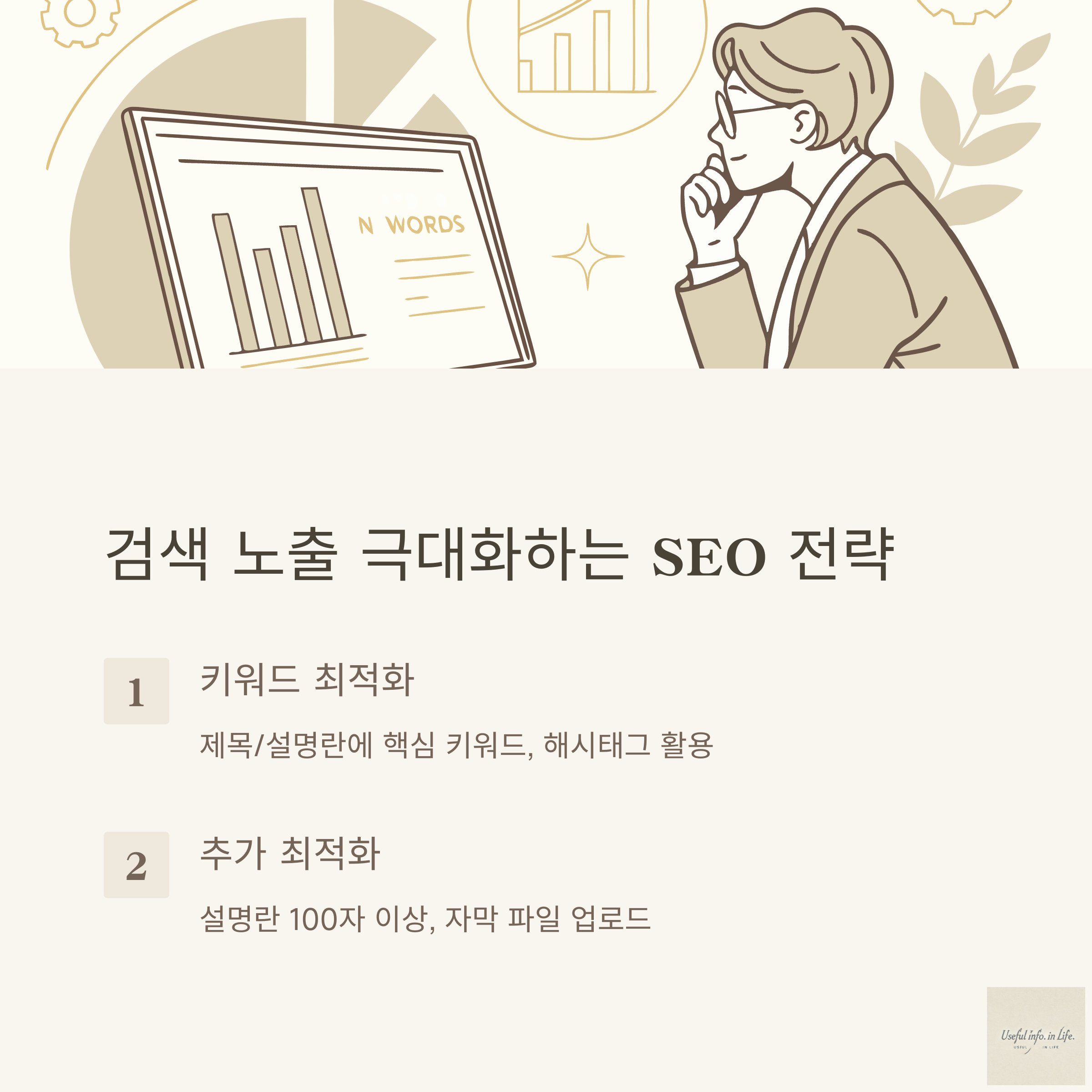- 자막 파일(SRT) 업로드 → 검색 노출 증가